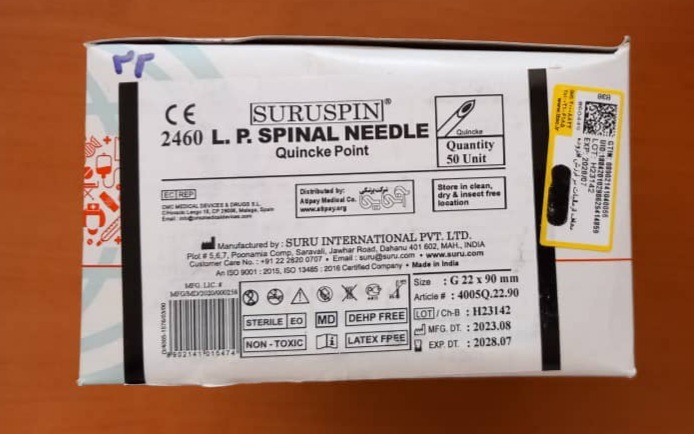سوزن اسپاینال مشکی سایز 22 SURUSPIN